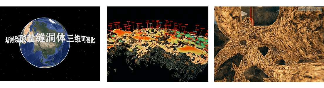 下圖是璞華為石化企業(yè)研發(fā)的碳酸鹽巖縫洞體三維可視化平臺: