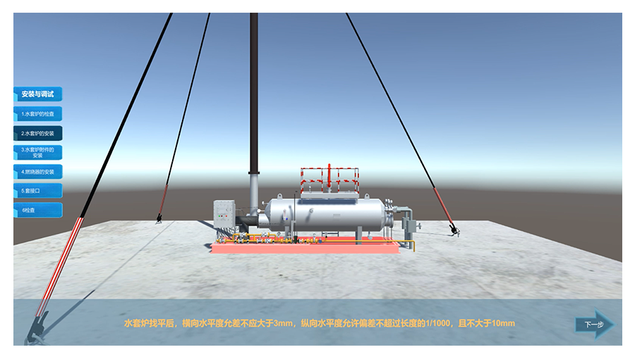 虛擬培訓(xùn)虛擬培訓(xùn)系統(tǒng)提供了一種方便企業(yè)進(jìn)行設(shè)備操作培訓(xùn)的新方法。虛擬培訓(xùn)系統(tǒng)讓學(xué)員在上手前就能熟悉整個設(shè)備的運行環(huán)境和狀態(tài),另外員工還可以在虛擬培訓(xùn)系統(tǒng)中進(jìn)行機(jī)械操作訓(xùn)練。虛擬培訓(xùn)系統(tǒng)包括演示模式、訓(xùn)練模式和考核模式。虛擬培訓(xùn)系統(tǒng)通過個人賬號及學(xué)號標(biāo)簽進(jìn)行培訓(xùn)內(nèi)容分類,每個培訓(xùn)人員都可以學(xué)習(xí)相關(guān)培訓(xùn)內(nèi)容。在運行維護(hù)和拆卸維修中表現(xiàn)的更加直觀,在針對突發(fā)安全事故應(yīng)對上,虛擬培訓(xùn)系統(tǒng)更能體現(xiàn)有優(yōu)勢。在現(xiàn)實世界中無法時刻發(fā)生安全事故,而虛擬現(xiàn)實技術(shù)能夠?qū)?zāi)難重現(xiàn),同時科學(xué)引導(dǎo)用戶進(jìn)行應(yīng)急處置。